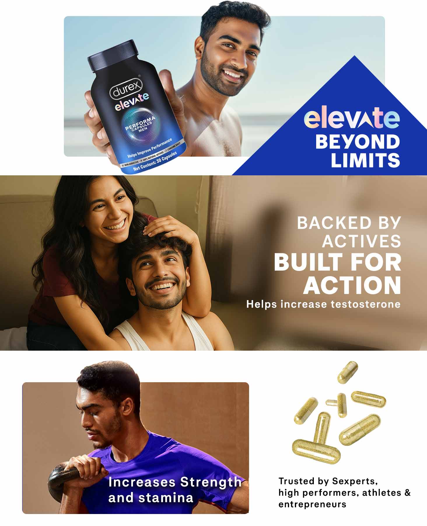 Durex Elevate Performa Capsules for Men are to be consumed by adult males above 18 years of age.